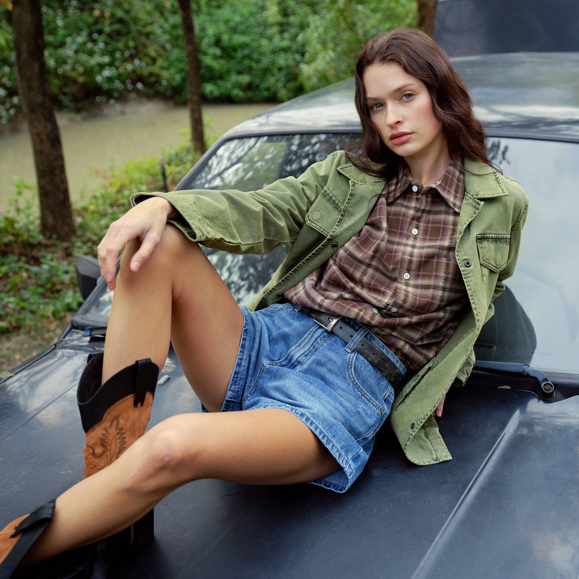 NO POCKET, BUTTON PLACKET, COLLARED, FRAYED HEM, LONG SLEEVE SHIRTS